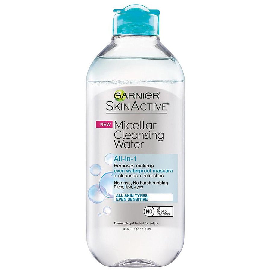 Esta agua limpiadora micelar todo en 1 es un limpiador facial y un desmaquillante a prueba de agua que es sorprendentemente poderoso, pero suave para la piel.