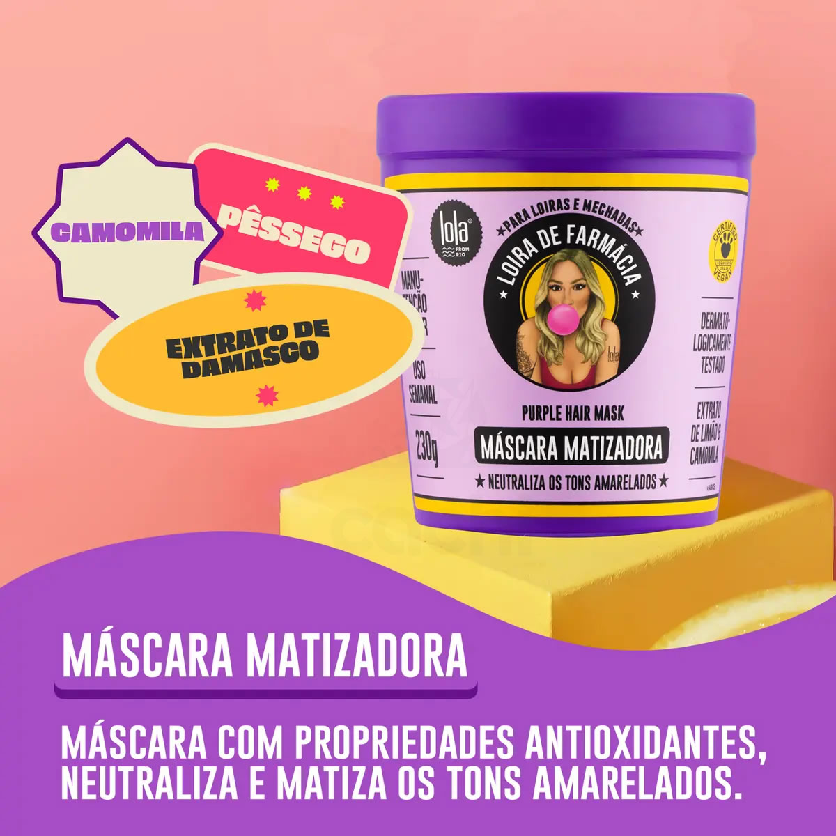 Lola, ¿mi cabello se volverá morado? No, Lolete. Nuestro matizador rubio de farmacia no tiene el poder de volver tu cabello morado. Funciona neutralizando los tonos anaranjados; ¡nuestra etiqueta incluye todas las instrucciones de uso!